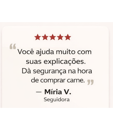 Ao perceber que a maioria das pessoas compra carne sem conhecimento, insegura e muitas vezes pagando caro por cortes errados, Fábio criou o Guia da Carne Certa: um método prático, simples e acessível que ensina qualquer pessoa a escolher a carne certa, evitar armadilhas e garantir mais sabor, maciez e qualidade no dia a dia.